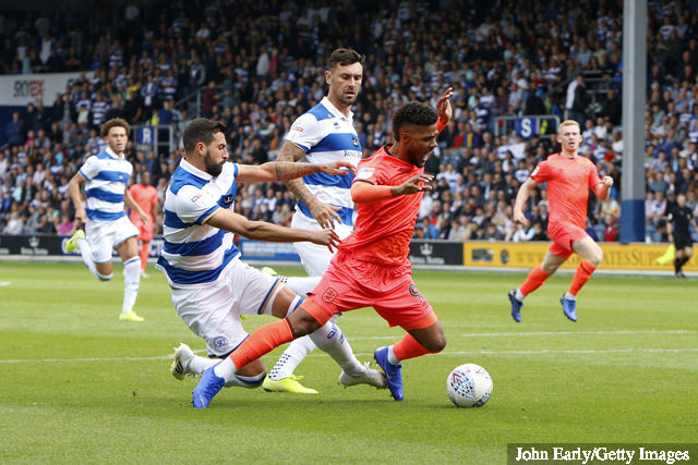 Rangers’ dangerous youngster Eze, who had scored a well publicised and fantastic goal against Stoke in the R’s opener, brought an excellent save from Grabara and looked a lively handful for the first 20 minutes before rather fading from prominence as the game wore on.